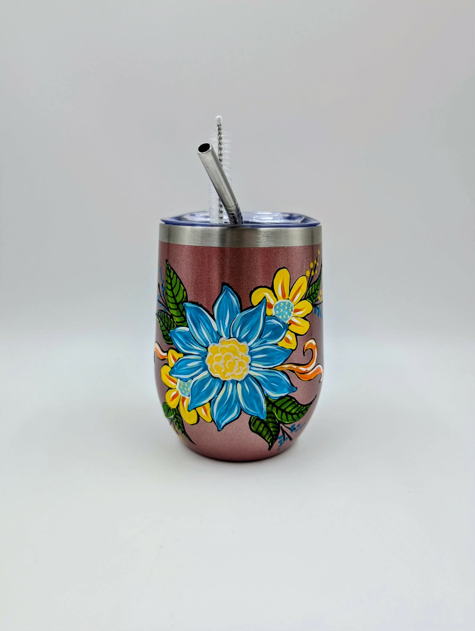 Gobelet isotherme rose en acier inoxydable peint à la main