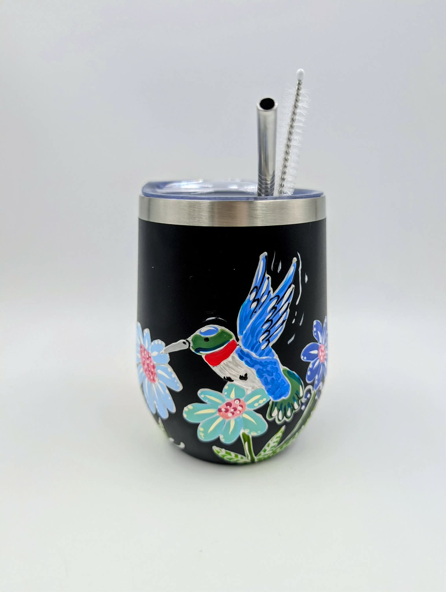 Gobelet isotherme noir Colibri et marguerites ** Prêt à partir **