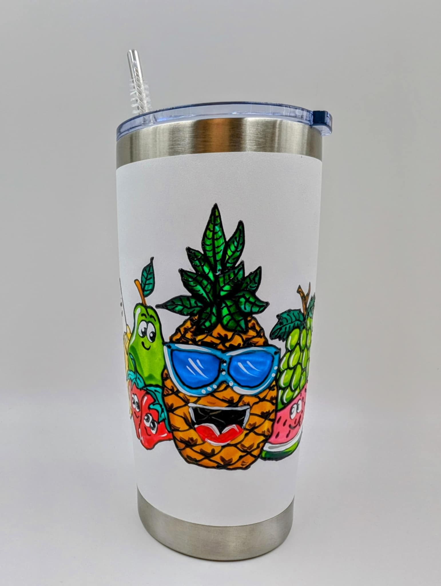 Mug isotherme Salade de fruits colorée & joyeuse– tasse en inox peinte à la main – 20 onces