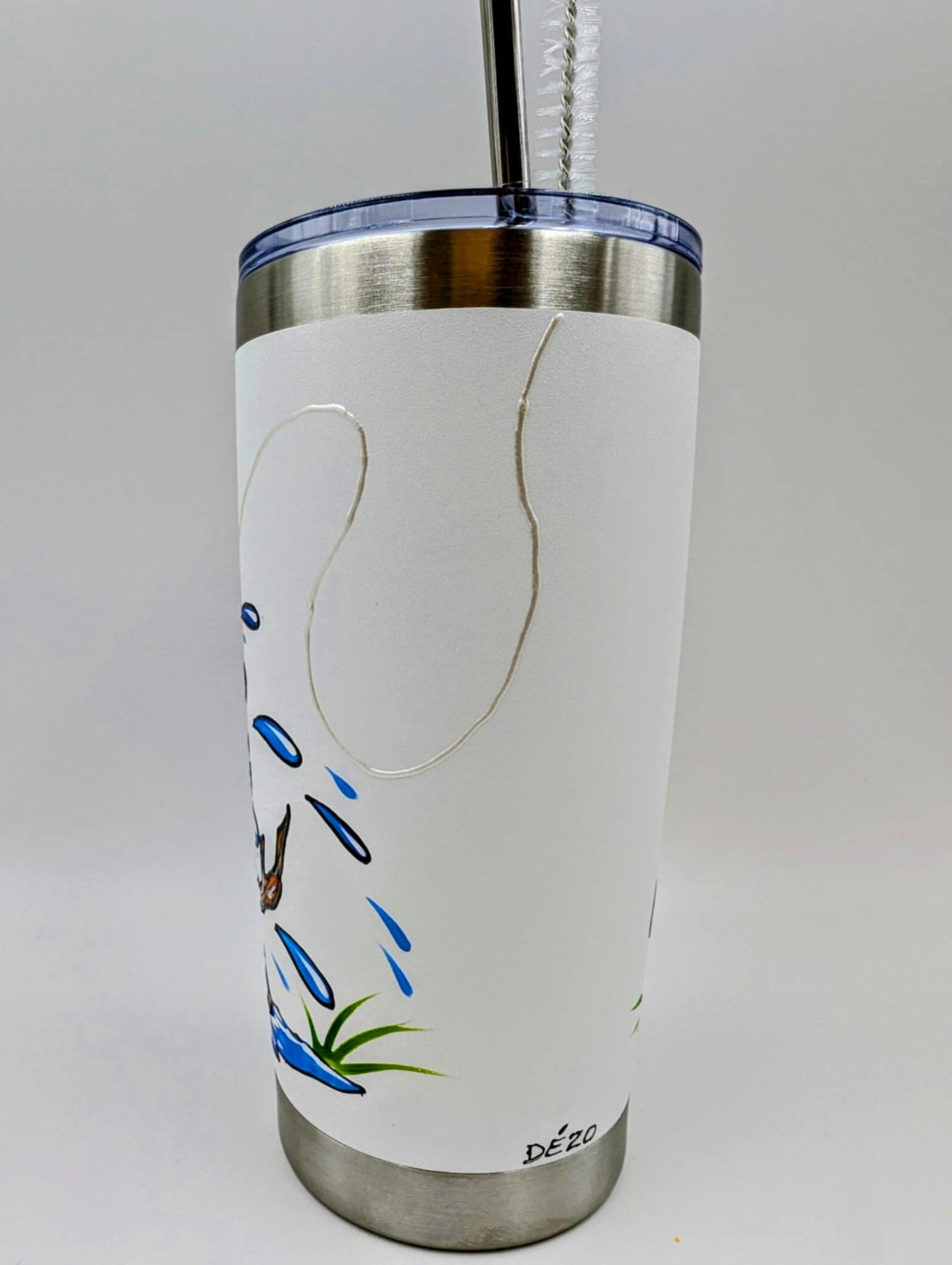 Son design unique signé Dézo allie praticité et esthétisme. Parfait pour les boissons chaudes ou froides, il conserve la température pendant des heures, tout en affichant fièrement une illustration artisanale d'inspiration nature.